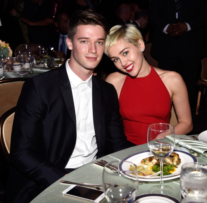 LOS ANGELES, CA – FEBRUARY 07: Patrick Schwarzenegger and Miley Cyrus attend the Pre-GRAMMY Gala And Salute To Industry Icons Honoring Martin Bandier at The Beverly Hilton on February 7, 2015 in Los Angeles, California. (Photo by Kevin Mazur/WireImage)