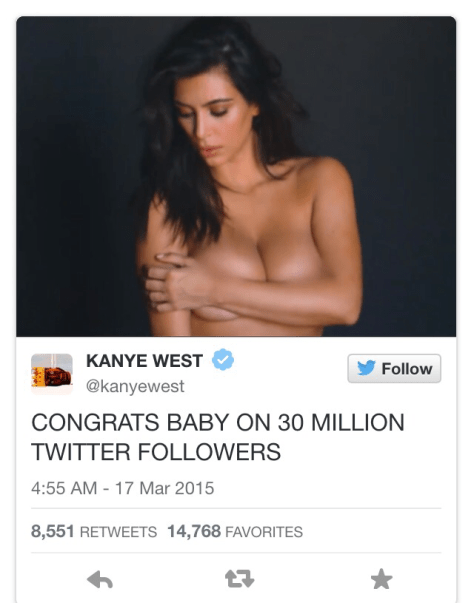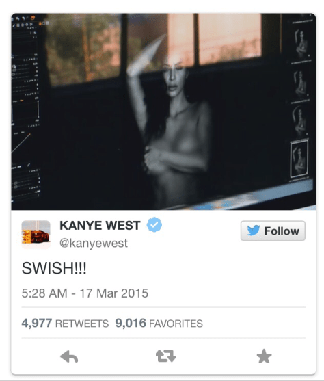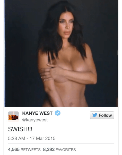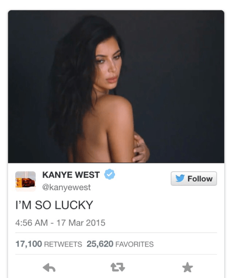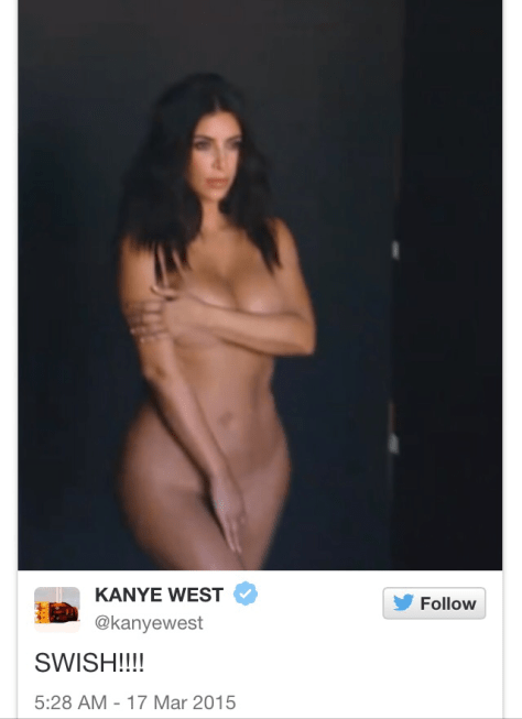 Kanye West is one happy husband and to show how proud he is of his wife he has posted a series of naked pictures of Kim Kardashian.