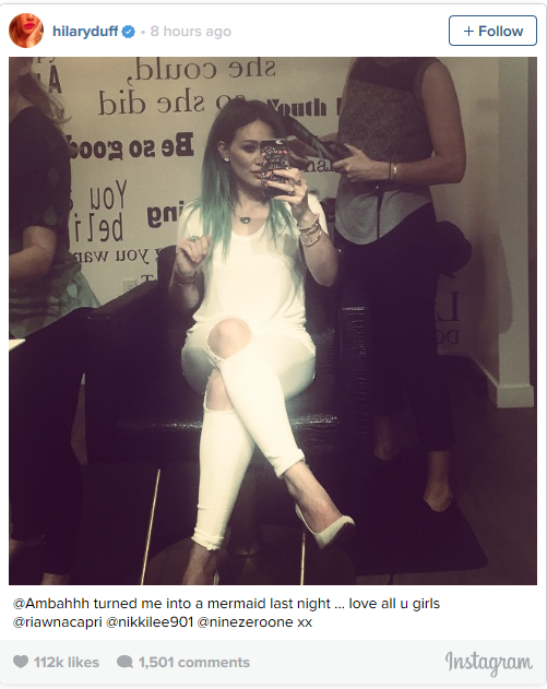 Hilary Duff has pulled a Kate Hudson in Bride Wars and has literally dyed her hair BLUE.